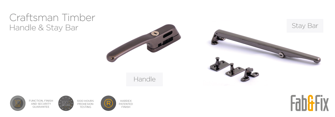 For traditionally styled timber windows, we have a choice of the Fab&Fix Guru break seal handle or Craftsman handle and stay bar. In a range of finishes that suit with over 200 perfectly matching products making an ideal choice for any timber window. Or for replacement application, the self locking ERA 808 timber window handle is ideal.